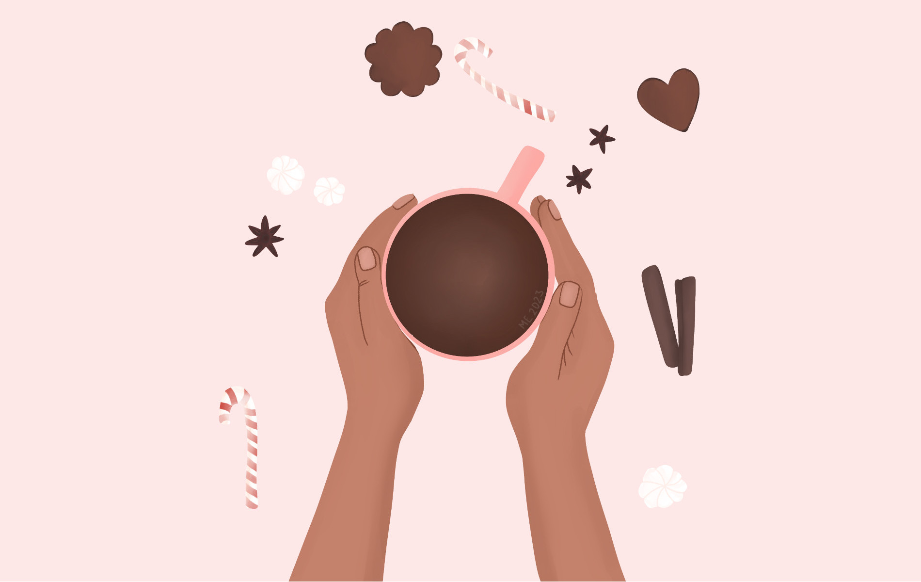 The wallpaper is an illustration with some hot chocolate, warm spices and a few sweet treats for you. In a slightly more simplified style than my other similar works. I hope you like it.